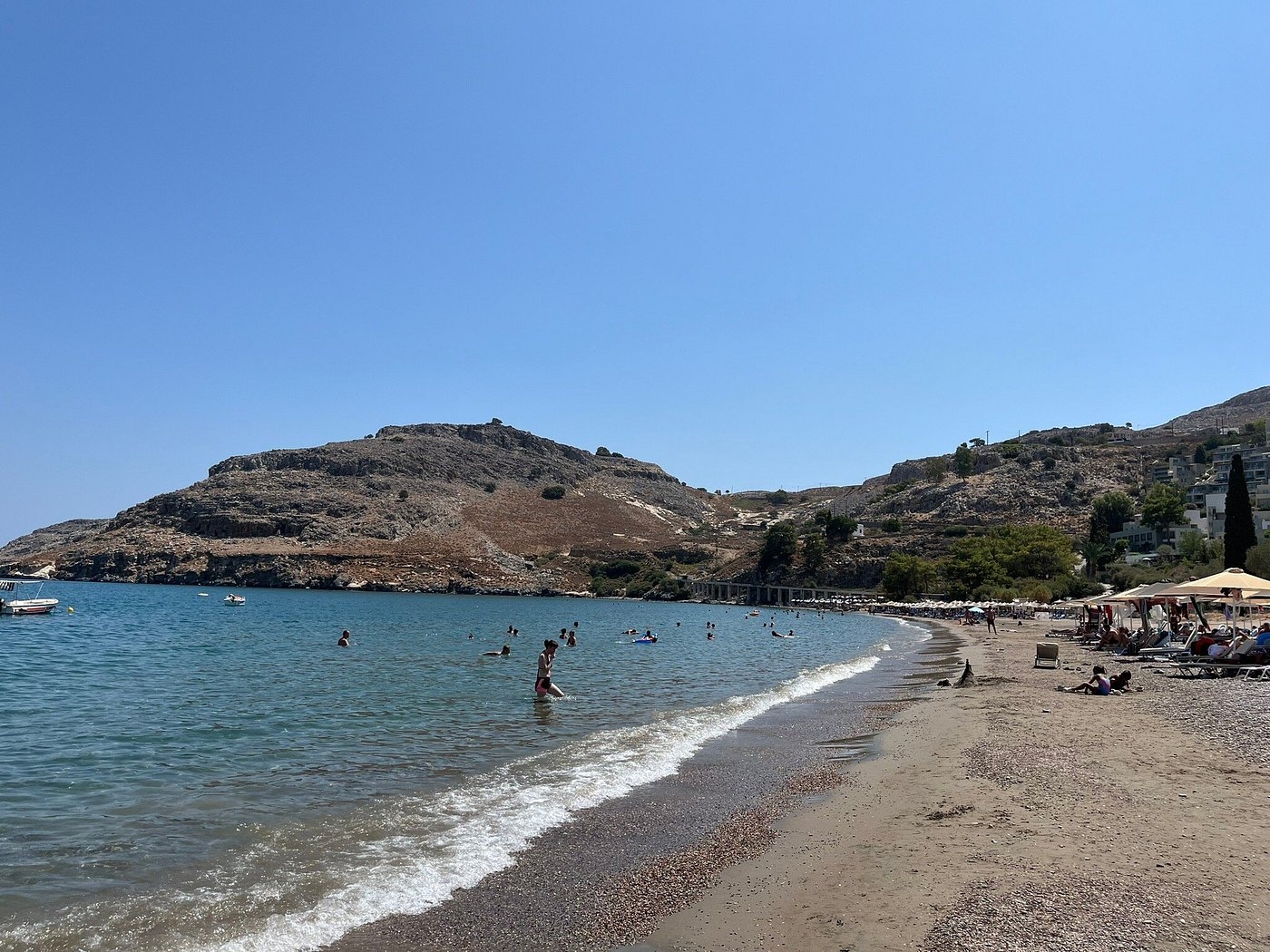 Only minutes from the center of Lindos, Vlycha is often overlooked by visitors. Calm, spacious, and family-friendly, it’s a great option for swimming, sunbathing, or enjoying the view of the open sea.